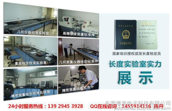 长度计量校准实验室:量传历史最长、标准设备最全、检测维修能力最强的实验室,本室共建有量块、平直度、粗糙度、光学仪器、测绘仪器、通用量具、精密测量、三坐标测量机、圆度仪、验光标准器组等共55项社会公用计量标准,负责本地区的几何量的量值传递,提供检测和校准服务,开展各项目计量仪器的检定、校准、修理。开展的检定/校准项目: 量块、平晶、干涉仪、测长仪、经纬仪、水准仪、测厚仪、坐标测长机、光学计、投影仪、影像测绘仪、万能工具显微镜、电动轮廓仪、气动量仪、偏摆仪、测微仪、液塑限测定仪、直角尺检定仪、百分表检定仪、千分表检定仪、量仪测力仪、水平仪检定器、水平仪零位检定器、测量显微镜、读数显微镜、金相显微镜、光学平直仪、水平尺、电子水平仪、合象水平仪、框式水平仪、平板、平尺、宽座角尺、刀口尺、线纹钢直角尺、万能角尺、卡尺、千分尺、指示表、内径表、杠杆表、数显表、钢卷尺、钢直尺、塞尺、工程检测尺、方箱、环规、螺纹量规、表面粗糙度样块、半径样板、螺纹样板、滑板式汽车侧滑检验台、轮偏检测仪、线缆计米器、线速激光测径。对有关长度、角度、粗糙度、平面度、线纹、端度、形状与相互位置的量值进行校准。