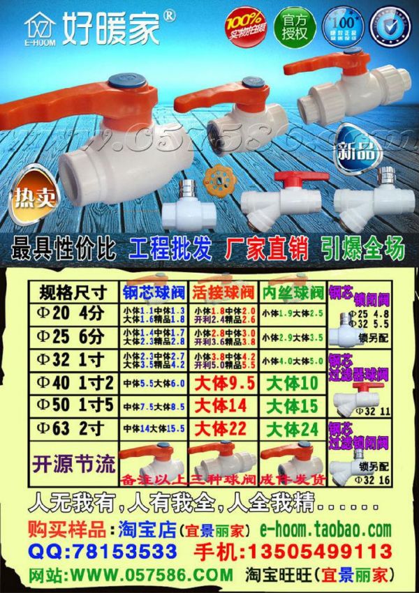 公司占地面积100000平方米,建筑面积60000平方米。现有员工200余人,其中中级以上职称占职工总数的30%。公司专业生产各种工程机械配件、PP-R管材管件、PE管材管件、水暖阀门、地暖分水器、铜管件、喷泉喷等系列产品,是一家集生产、加工、设计、研发、销售于一体的民营高科技企业。公司现有国内外最先进PP-R管材挤出机生产线8条,生产口径DN20-160的各种PP-R管材。PE挤出机生产线3条,生产口径DN20-800各种PE管材。年生产PP-R、PE、PE-RT、PE-X、PB塑胶管材5000多吨。公司拥有各种电脑数控注塑机20多台,模具800余套,生产各种规格的PP-R,PE管件1000余吨,公司还有各种数控车床、仪表车床80余台,加工生产各种铜铁合金的机械配件、地暖分水器、水暖件、阀门等系列产品,生产能力500吨以上。公司代理生产加工的品牌好暖家、格兰苏、宜景丽家分别为机械配件、PPR管材管件、地暖分水器、阀门、PE管材管件等各种系列产品。公司专业生产加工PPR/PE/PERT/PB管材管件-(铜球阀、全塑球阀、钢芯球阀、截止阀、暗阀、铜活接、过滤器、温控阀、锁闭阀)、铜管件-(铝塑铜管件、水暖铜管件、气动铜配件、汽配铜配件、涡轮衬套)、地暖分水器-(锻造一体分水器、智能温控分水器、连体分水器、PPR分水器、PB分水器、电磁执行器、电动球阀、液晶面板、电磁温控)等.