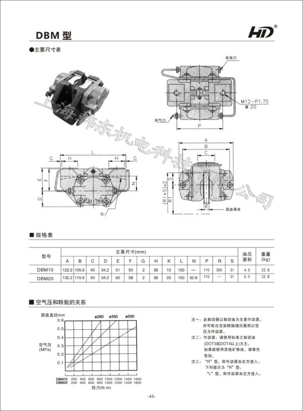 DBM型油压碟式制动器以制动油为主要作动源,也可以配合空油压转换增加器而已空压为作动源。扭力范围从2到36500N.M,。