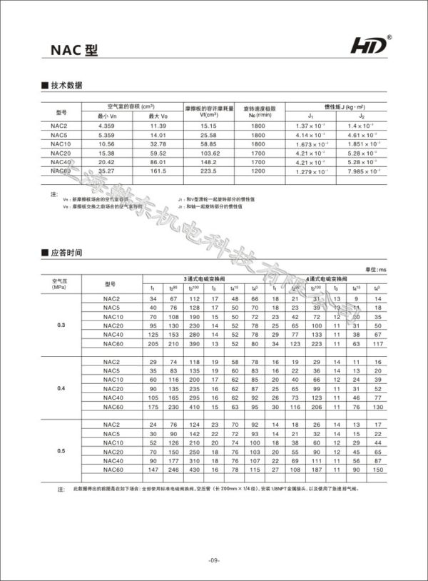 NAC型(标准型)空压通轴式离合器靠空压来连结,靠复归弹簧来放开。圆盘靠空气压沿轴方向滑动,接触摩擦板。圆盘,摩擦板等,被组装到轮毂上,成为一体化构造。摩擦板可用拧开调整螺帽的方式进行分解,交换简单。扭力范围从2到36500N.M。
