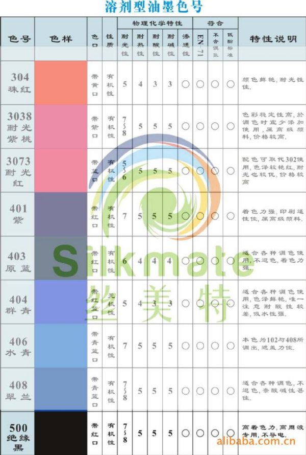 适应范围:PVC制品、纸类、PVC皮革、玩具、木、石材、转印用等。
