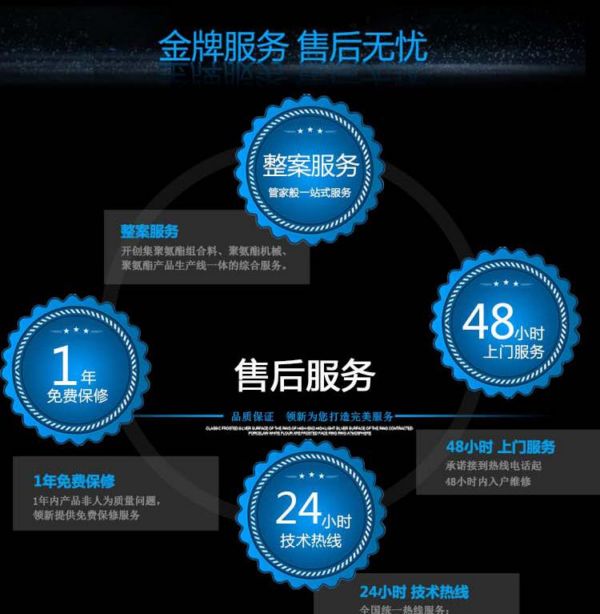 目前我公司的产品有聚氨酯高压发泡机、低压发泡机、密封条浇注机、弹性体浇注机、汽车座椅生产线、外墙保温板生产线、彩瓦夹芯板生产线等各种全自动生产线及各类聚氨酯相关配套的机械设备,长期提供各类聚氨酯组合料及MDI。