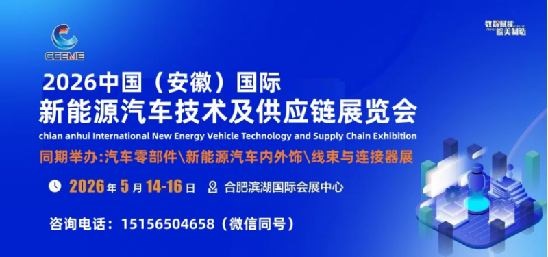 2026安徽国际新能源汽车技术及供应链展览会与“第26届中国(合肥)国际装备制造业博览会”融合展将于2026年5月14-16日在合肥滨湖国际会展中心举行;本届展会以“产业结构重塑与体系升级,促进行业可持续发展”为主题,聚焦新能源汽车整车、零部件、动力电池、电驱动系统、电控系统、智能工厂解决方案等核心领域,涵盖氢燃料电池、轻量化材料等技术模块。。