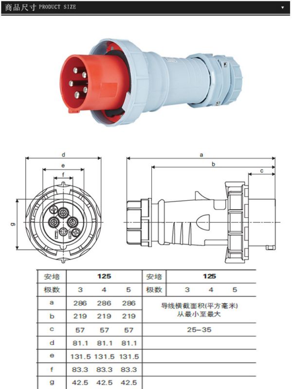 意大利125A 多功能工业插座插头 批发防水防尘工业电缆插头