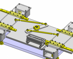 在作业位置上对通过滚轮传送带传送的托盘进行定心。