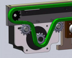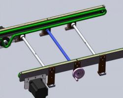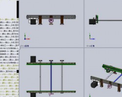 PCB治具链条轨道线体样机模型,采用SW2012进行设计绘制。设计原理是采用步进电机带动链轮,链轮带动链条进行转动,链条带动上方的PCB治具进行移动;该链条线体可通过手轮转动调节内档尺寸,适用治具最大规格为450450mm;模型主要包括直线轴承、T型丝杆、6B-1链条、手轮、链轮等市购件。