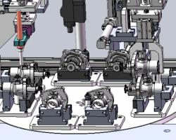 该设备是分割器多工位自动检测组装机,一种专用自动化设备,自动组装测试铆接,设备是采用分割器实现多工位,每个工位实现不同功能,送料是自动送料,值得大家参考借鉴。