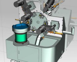 此设备是某电子零件自动钻孔机,采用立式转盘式结构设计,机构经典。自动送料自动输出机构。
