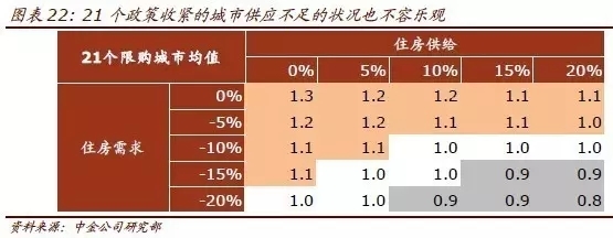 我们对此次受到调控的一线和核心二线城市需求/供应比率(“需供比”)进行了情景分析。