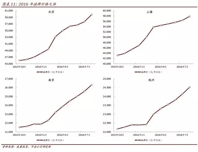 出于对利润率的保护,2016 年昂贵的土地成本和显著的溢价将激发开发商的提价意愿,在2016 年拿地过于激进的开发商压力尤甚。