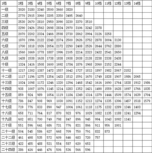 2017公务员工资套改等级标准对照表